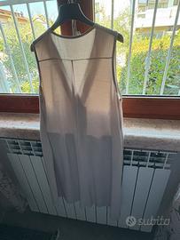 Vestito beige donna taglia unica Misto lino Piegone sul davanti Lunghezza longuette