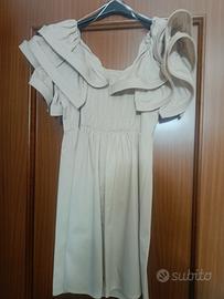vestito panna estivo con maniche a balze e plissettato sul petto, elegante, indossato diventa molto " movimentato"