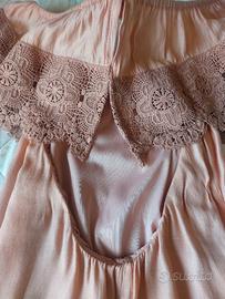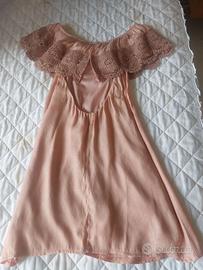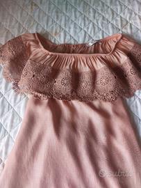 Bellissimo abito corto di Bershka, color rosa antico, con spalle scoperte e dettagli in pizzo. Perfetto per l'estate!