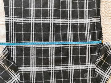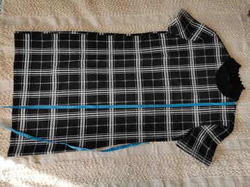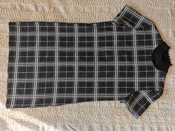 Abito corto di Bershka con stampa a quadri bianchi su fondo nero. Il taglio è dritto e morbido, non aderente. Maniche corte e collo a lupetto in maglina nera a costine. Non l'ho mai messo perché non porto il nero. Misure in foto.