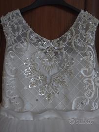 vestito un po' corto davanti e lungo dietro perfetto per damigella o comunione bellissimo con strass e perline top ricamato