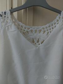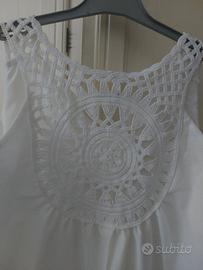 Vendo vestito bianco corto estivo da donna,taglia S ma e' largo,mai indossato.Bellissima lavorazione sul retro vestito .Il vestito ha anche una sua fodera interna.