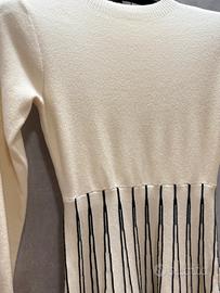 Abito bianco e nero, maniche lunghe, caldo e pesante.