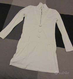 Vestito bianco in cotone con colletto e tre bottoni frontali, una cerniera per regolare la scollatura gonna mini e passanti in vita deve calzare molto aderente
