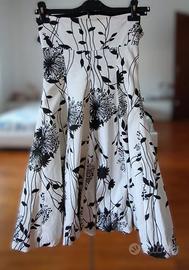 Vestito bandeau elegante con raffinata fantasia floreale bianco-nero.