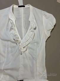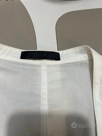 Vestito leggero in cotone, sopra il ginocchio, bianco, con cinturino ad incastro, dei volant sulla scollatura. Marca Pinko. Vestibilità xs/s. In ottimo stato