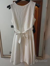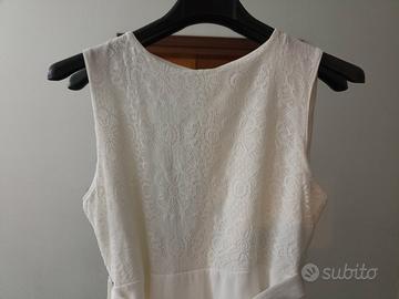 carinissimo vestito bianco di cotone, corpetto lavorato e gonna ampia, indossato un paio di volte, abbinato a giacchetto corto tipo coprispalle