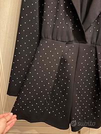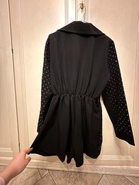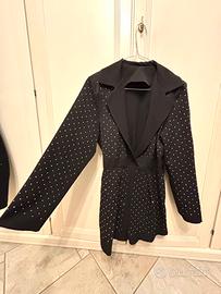 Vestito blazer nero con strass applicati sulla parte anteriore e sulle maniche. Morbido e comodo da utilizzare con una cintura in vita.