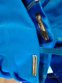 Vendo vestito elegante originale Rinascimento di raso colore blu, taglia S. Coprispalle blu coordinato taglia M. Ottimo stato.