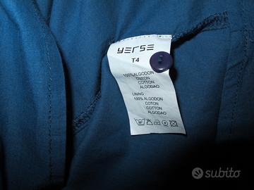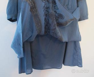 Vestitino corto stile country / boho di un bel colore blu con maniche al gomito. Romantico e ben rifinito. Ideale per l'estate, è leggero e fresco al tatto: sia l'abito che la sottogonna sono in 100% cotone. Marca Yerse. Veste L, si adatta grazie all'elastico in vita. Non so a cosa corrisponda la taglia 4 spagnola esattamente, ma riporto le misure. Misura da spalla a orlo della gonna: 92 cm. Misura da elastico in vita a orlo della gonna: 51 cm. Misura girovita: 90 cm. Lunghezza manica: 45 cm. Misura da scella ad ascella: 52 cm. Lavato ma mai indossato, vendo per cambio taglia. Pagato 40 euro all'epoca. Contattatemi se avete bisogno di ulteriori foto o info. Ritiro a mano o spedizione con TuttoSubito.