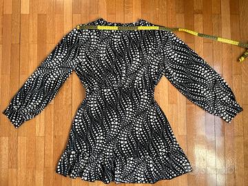 VESTITO BLU ROYAL, COLORE NERO CON BOLLE BIANCHE, SUL CARTELLINO TAGLIA UNICA MA CORRISPONDE AD UNA S (MISURE IN FOTO), TESSUTO LEGGERO, USATO POCO, IN BUONE CONDIZIONI, PRESENTA IMPERFEZIONI COME DA FOTO