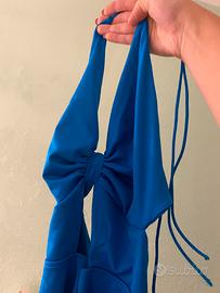 Vestito blu con fiocco davanti intrecciato dietro
