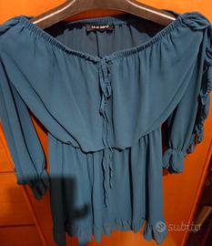 vestito verde petrolio con scollo a barchetta che lascia scoperte un po di spalle come da prima foto taglia S