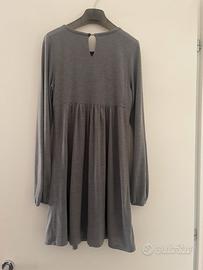 Colore grigio melange elegante, con maniche lunghe e polsini elastici, vita alta che lascia partire una gonna a pieghe morbide