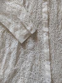 Vestito camicia in sangallo bianca Tag. 46. Si può usare anche come copricostume, lunghezza appena sopra al ginocchio per altezza 173 cm. Mai usato.