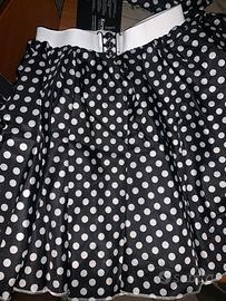 Vestito carnevale bianco e nero a pois costituito da gonna e foulard