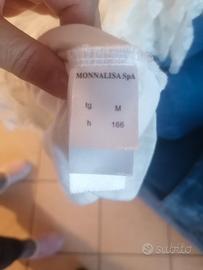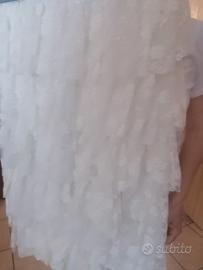 Vestito da cerimonia, con balze di pizzo sotto e maniche, sopra a costine. Bianco. Usato una sola volta. In perfetto stato.