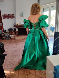 Vestito raso verde bottiglia con scialle taglia 42/44