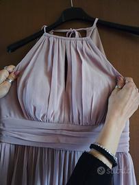 vendo vestito per cerimonia colore rosa antico con coppe preformate e spacco sulla gamba.