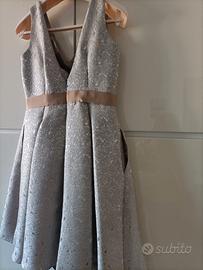 Vestito cerimonia tessuto broccato argento e oro messo una sola volta taglia 42