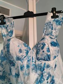 propongo vestito da cerimonia utilizzato una sola volta, taglia M colore bianco e azzurro