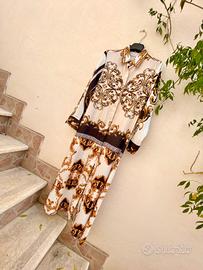 Fantasia barocca, base panna con motivi oro e maculato.