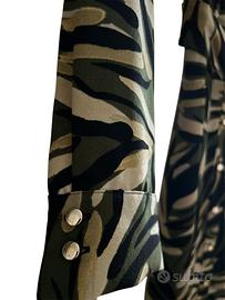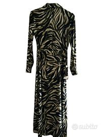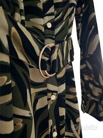 Vestito midi con collo a revers e maniche lunghe. Dettaglio di cintura dello stesso tessuto con doppia fibbia dorata. Chiusura anteriore con bottoni. Vendo abito nuovo mai usato per inutilizzo. Sono di Padova, pertanto meglio se la persona interessata sia della zona. Prezzo iniziale €60.