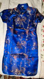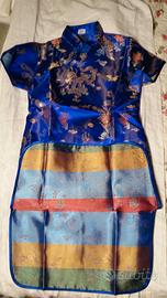 Delizioso vestito da bambina in seta o misto seta (non ci sono etichette). Taglia per 8 anni. Colore bluette cangiante con ricami colorati e oro. Nuovo, mai usato.