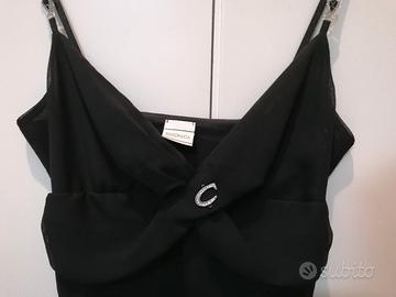 L'abito è veramente molto bello, elegante per ogni tipo di cerimonia o evento che richiede un certo stile, è impreziosito da una spilla con una C decorativa, e con dei bellissimi brillanti che mettono in evidenza le bretelline, vedi foto.
