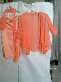 Composto da un tubino in raso con una sciarpa in viscosa cucita al vestito e che passa attorno al collo per finire sul lato sinistro del vestito.