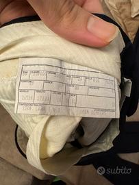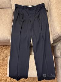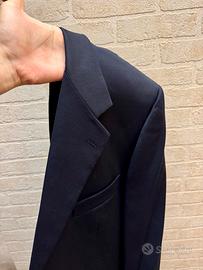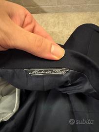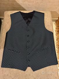 Vendo vestito completo cerimoniale, molto elegante e di alta qualità. Giacca, pantaloni, cravatta e gilet. Colore della giacca e pantalone blu scuro, gilet e cravatta blu a punti bianchi. Taglia 54 e di materiale pura lana vergine e viscosa mentre il gilet è di seta. Completo di bottoni e tasche. PS: Per altre foto e misure contattare. 🇮🇹 Prodotto in Italia 👌🏼 Perfette condizioni; 🚚 Spedisco in 12/24 h con imballaggio accurato.