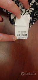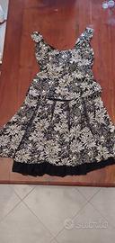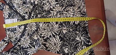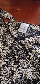 Bellissimo completo estivo composto da canotta con spalline arricciate e gonna svasata a vita alta, entrambi con stampa floreale bianco/nero.