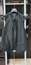 Il vestito è composto da pantaloni, panciotto, giacca e cravatta.