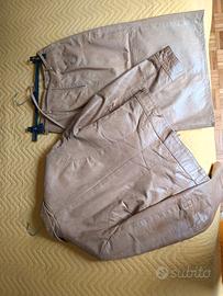 Vestito completo color champagne composto da giacca e gonna lunga con spacco in vera pelle fatta da Barone pelletteria a Firenze Taglia S