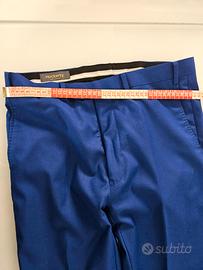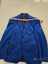 Vendo completo uomo elegante giacca e pantaloni marca HOCKERTY originale, alta sartoria, tg S, in perfette condizioni, colore blu elettrico, perfetto per cerimonie e feste eleganti. Misure in foto.