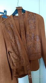 Vendo vestito completo gonna, blusa e bolerino colore marrone bruciato taglia media 44