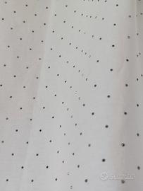 Vendo vestito bianco a taglio dritto con strass su tutta la lunghezza e due spacchi laterali sul fondo.