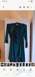 vestito con coprispalle verde bottiglia, corto avanti e lungo sul dietro,il coprispalle lo rende molto elegante .