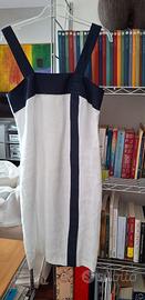 Vestito bianco e blu con giacchino in puro lino 100%. Tg.42.