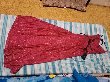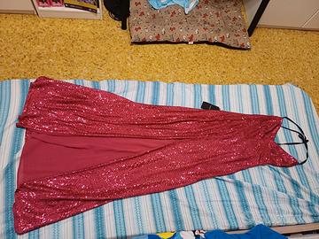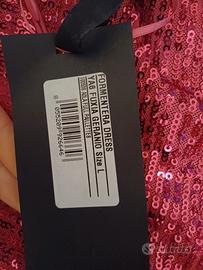 Abito nuovo Pinko con paillettes Il colore è piú scuro rispetto alle foto ( il colore reale corrisponde alle prima foto indossata dalla modella ) Taglia italiana L 44 Fucsia