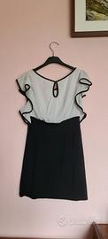Vendo tubino bianco e nero con volantini sulle spalle, taglia S, lunghezza 75 cm.