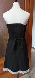 vestitino in cotone senza spalline con elastico dietro la schiena e una cinta che lo stringe in vita, Abbinato a un coprispalle traforato bianco a maniche lunghe