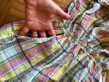 comodissimo vestitino- tutina. effetto vestitino davanti e parte sotto con shorts nascosti Fantasia quadretti multicolor, molto fresco. Tessuto in cotone 98%. Comode tasche. Taglia S - veste bene essendoci elastico. Perfetto stato.