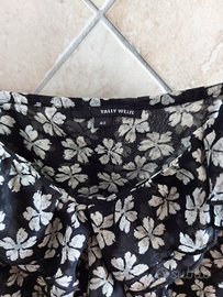 Vestito corto nero con fiori bianchi con voulant verticale sul davanti taglia 40 ma veste come una 42. Usato 2 volte è in ottime condizioni pari al nuovo, nessun difetto. No perditempo.