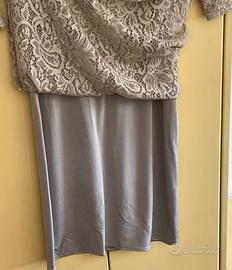 Vestito (con fodera) di colore beige, da sera in pizzo, elegante e femminile. Maniche leggermente più lunghe del gomito. Materiale elastico, vestito aderente. Taglia 42. In ottime condizioni.