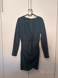 Abito corto con maniche lunghe e scollo a V incrociato. Tessuto strutturato ma morbido, con arricciatura laterale che valorizza la silhouette. Chiusura con zip sul retro. Perfetto per occasioni eleganti, serate o eventi autunnali/invernali. Indossato una sola volta, in condizioni perfette.