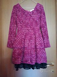 vestito corto sopra ginocchio con sottogonna foderato e tulle ondulato nero, a trama incrociate, a ricciolo in cotone e lana . manica lunga autunnale.