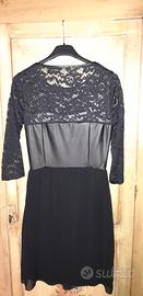 Maniche a tre quarti in pizzo, corpetto in simil pelle, gonna in tulle con sottoveste.