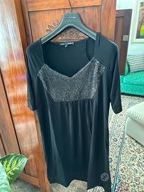 Vestito corto colore nero,ha sul davanti delle paillettes il tessuto è di maglina
