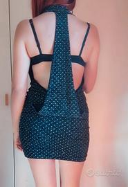 Vestito corto elegante con parte della schiena scoperta, nero con brillantini argento usato solo una volta in ottime condizioni.
